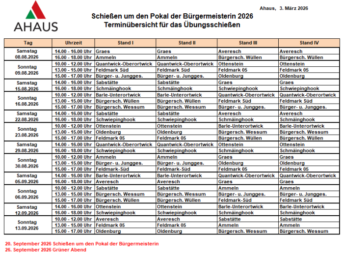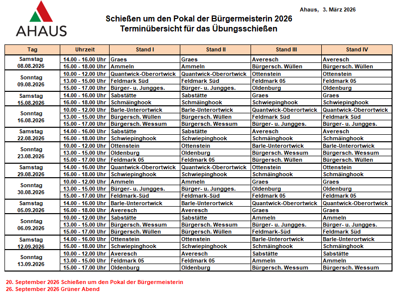 Schießtermine 2025 SV- Ammeln